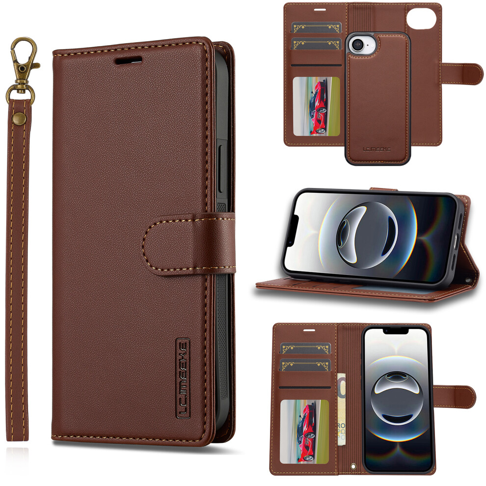 (iPhone 16e, Brown) LC.IMEEKE L2 Series for iPhone 16e Case PU Leather Wallet Detachable Magnetic Phone Cover