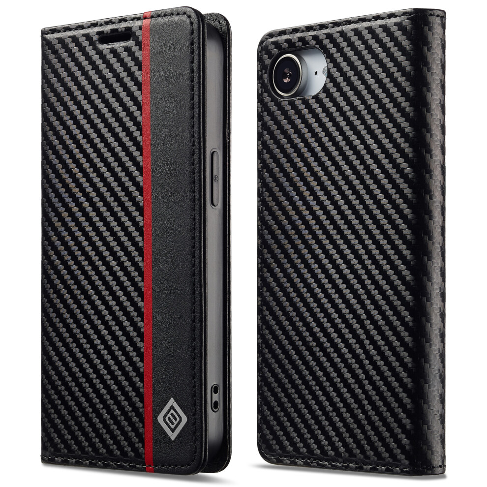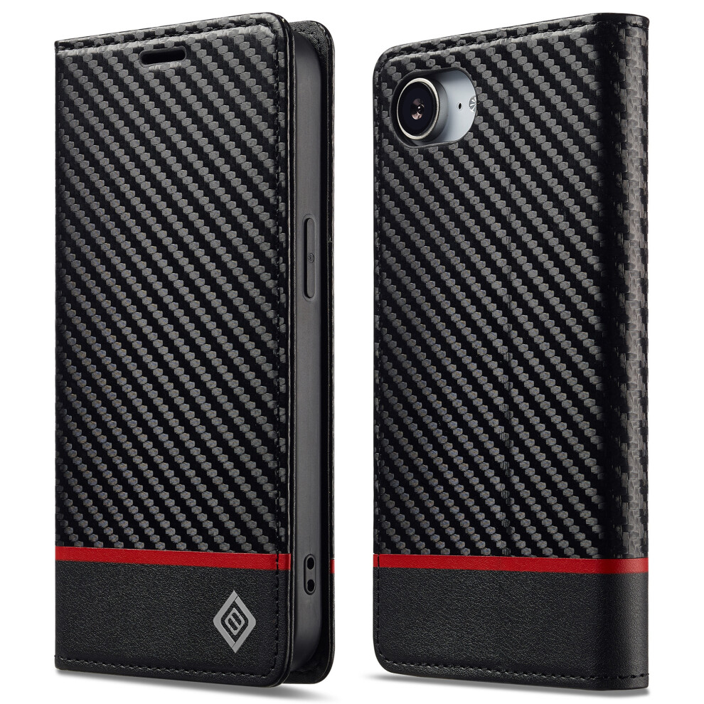 (iPhone 16e, Horizontal Stripe) LC.IMEEKE For iPhone 16e Case Carbon Fiber Texture Phone Cover Stand Card Holder