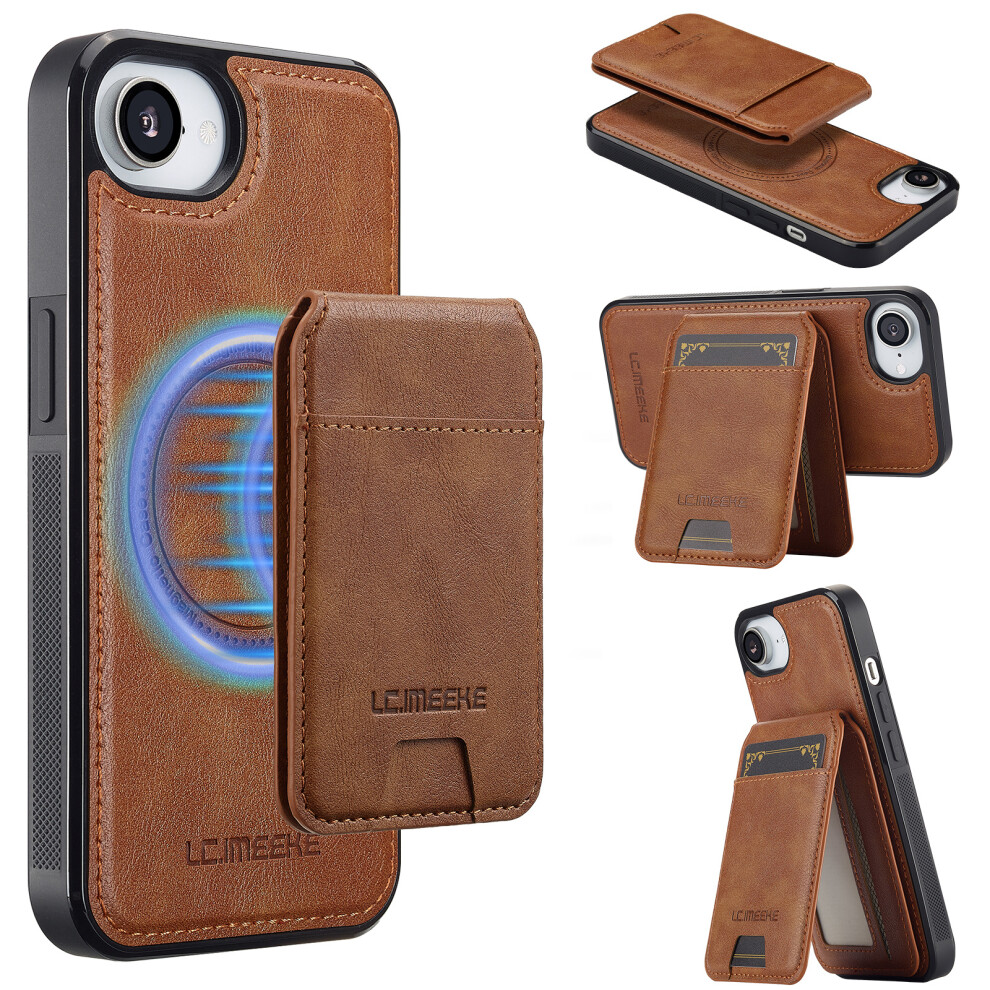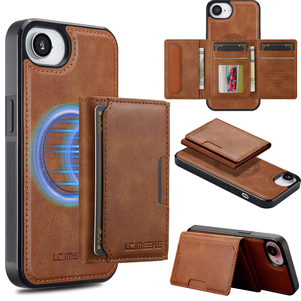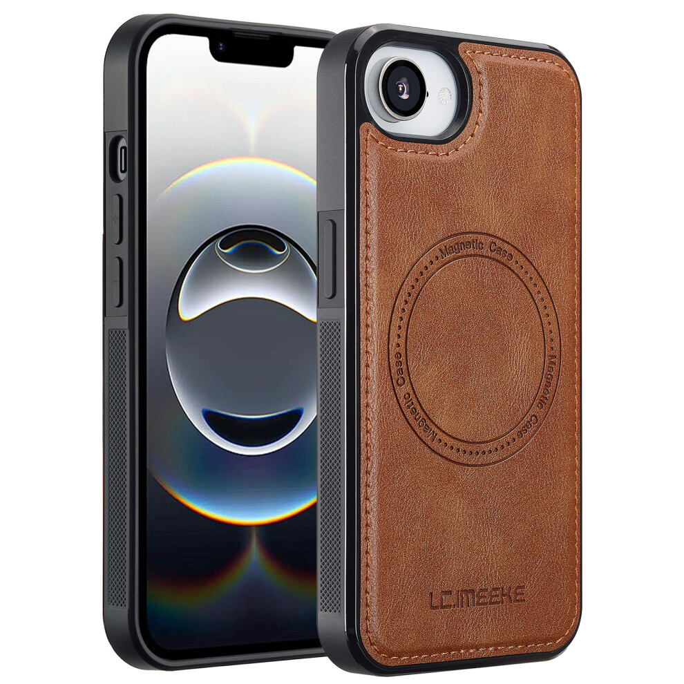 (iPhone 16e, Brown) LC.IMEEKE For iPhone 16e Magnetic Case Compatible with MagSafe Leather+TPU Back Cover