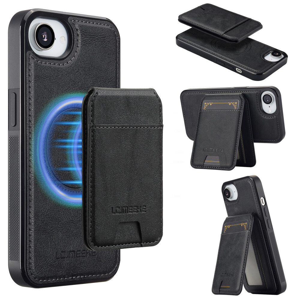(iPhone 16e, Black) LC.IMEEKE L3 For iPhone 16e Magnetic Case Detachable Card Holder Leather TPU Mobile Cover
