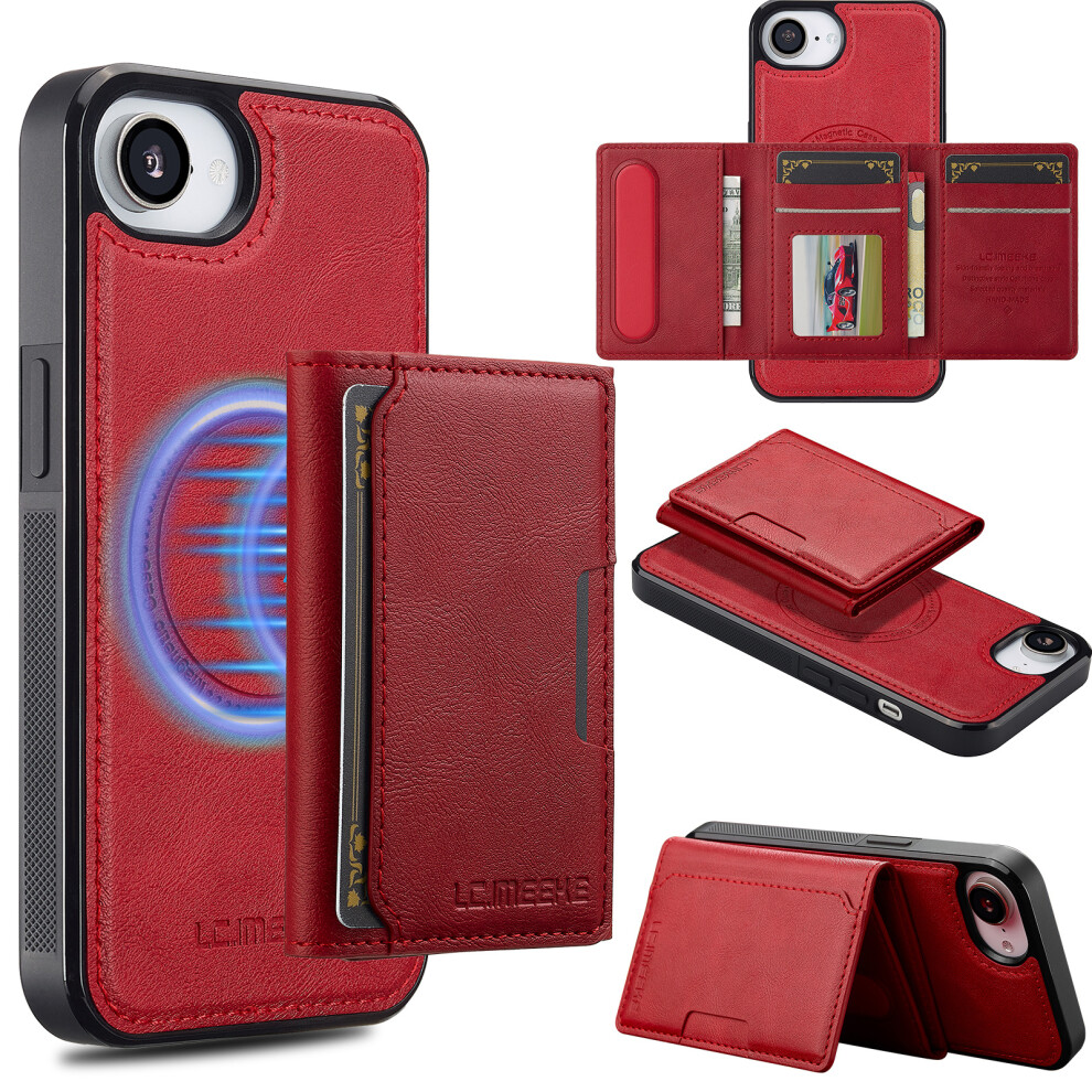 (iPhone 16e, Red) LC.IMEEKE For iPhone 16e Magnetic Case Compatible with MagSafe Leather+TPU Back Cover