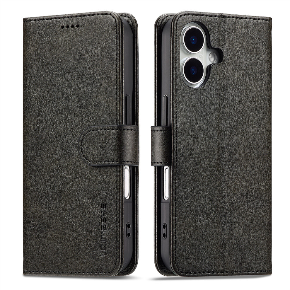 (iPhone 16e, Black) LC.IMEEKE L1 Series for iPhone 16e Case PU Leather Wallet Stand Protective Phone Cover