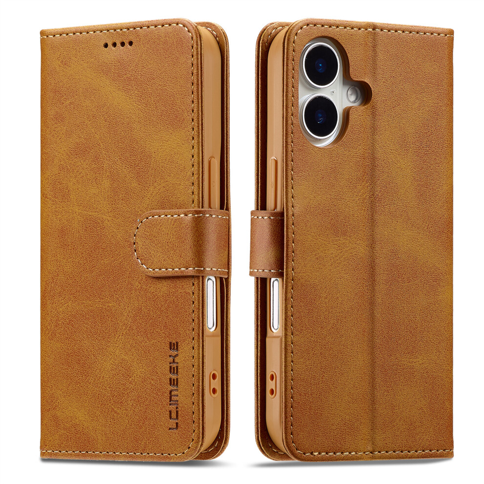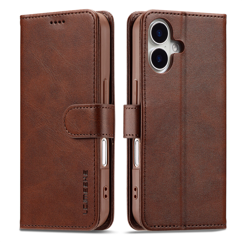 (iPhone 16e, Brown) LC.IMEEKE L1 Series for iPhone 16e Case PU Leather Wallet Stand Protective Phone Cover
