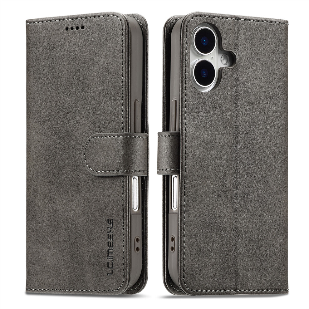 (iPhone 17, Grey) LC.IMEEKE For iPhone 17 Case Calf Texture PU Leather Stand Wallet Phone Cover
