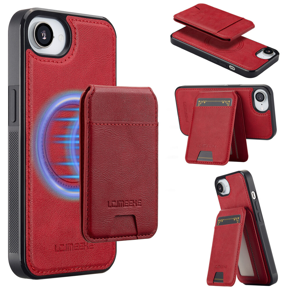 (iPhone 16e, Red) LC.IMEEKE L3 For iPhone 16e Magnetic Case Detachable Card Holder Leather TPU Mobile Cover
