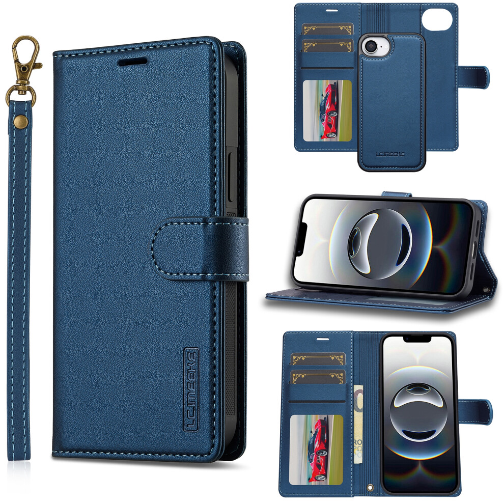 (iPhone 16e, Blue) LC.IMEEKE L2 Series for iPhone 16e Case PU Leather Wallet Detachable Magnetic Phone Cover