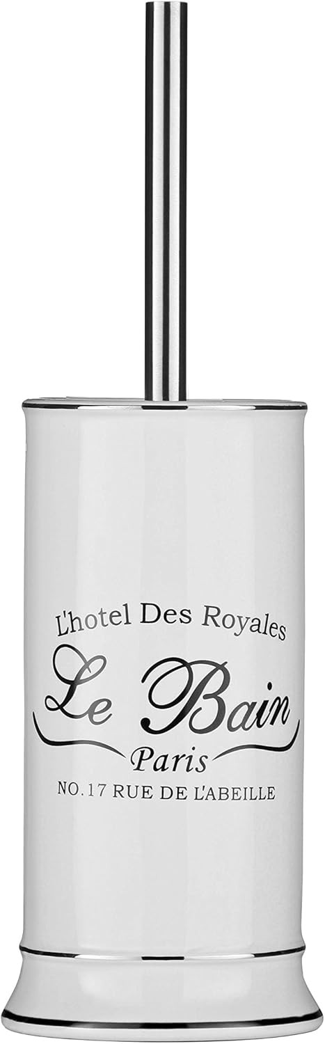 Le Bain White Ceramic Free Standing Toilet Brush and Holder Bathroom Cleaning