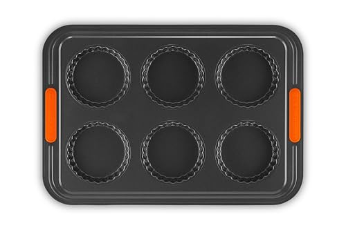 Le Creuset Non-Stick Carbon Steel Fluted Tart Tin Tray 6 Cup, Forged Aluminium, Black, 46055000010000