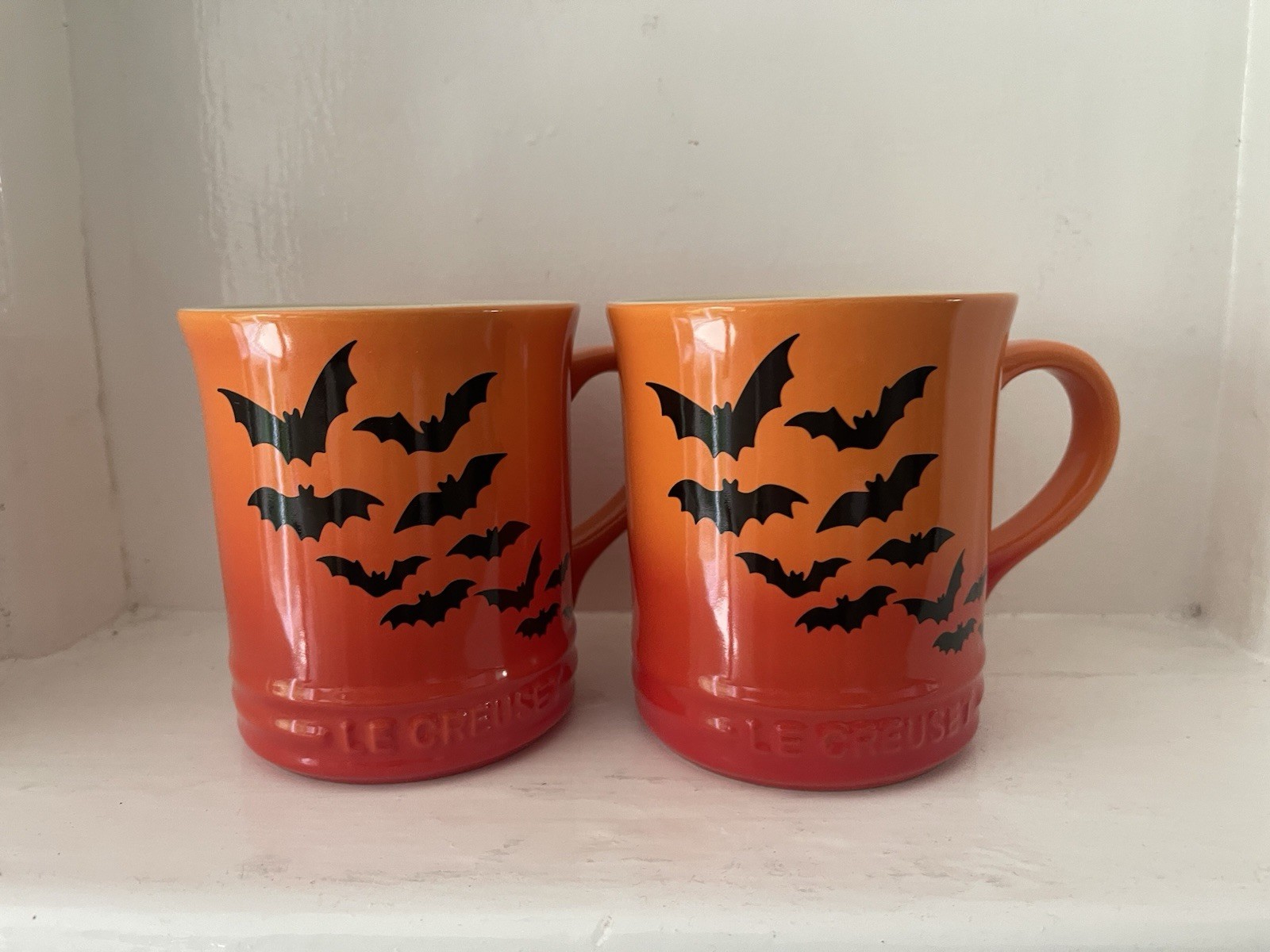 Le Creuset Halloween Bat Stoneware Mug 400ml in Volcanic - TWO MUGS NEW)