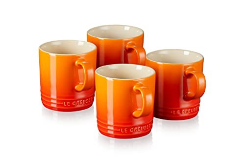 Le Creuset Stoneware Mugs, 350 ml each, Volcanic, 4 Count (Pack of 1)