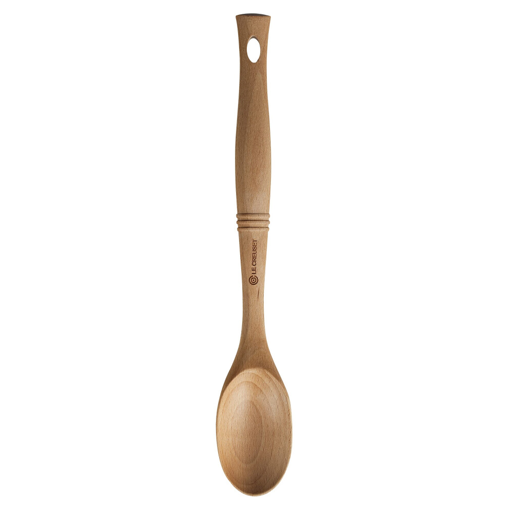 Le Creuset Revolution Solid Spoon - 12.5 in x 2.5 in Beech Wood, Easy-Grip Elliptical Handle, Stove-Top Safe | Code 4.7014E+13