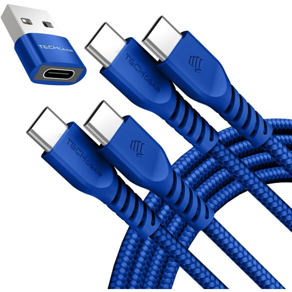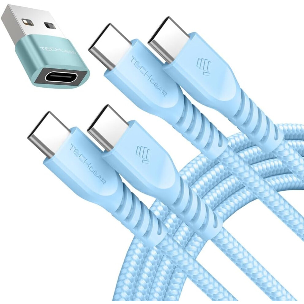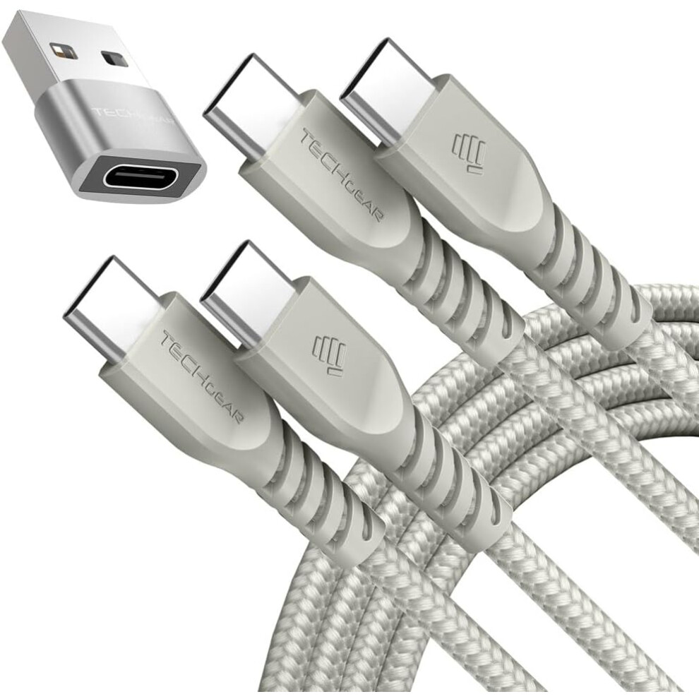 USB C to USB C Charger Cable 60W (1M+1M+Adapter) STRONG Cable Fast Charging Data Lead iPhone 15, iPad Pro 12.9 2022, MacBook Pro, Samsung S24/A15/A25
