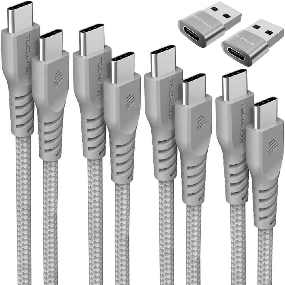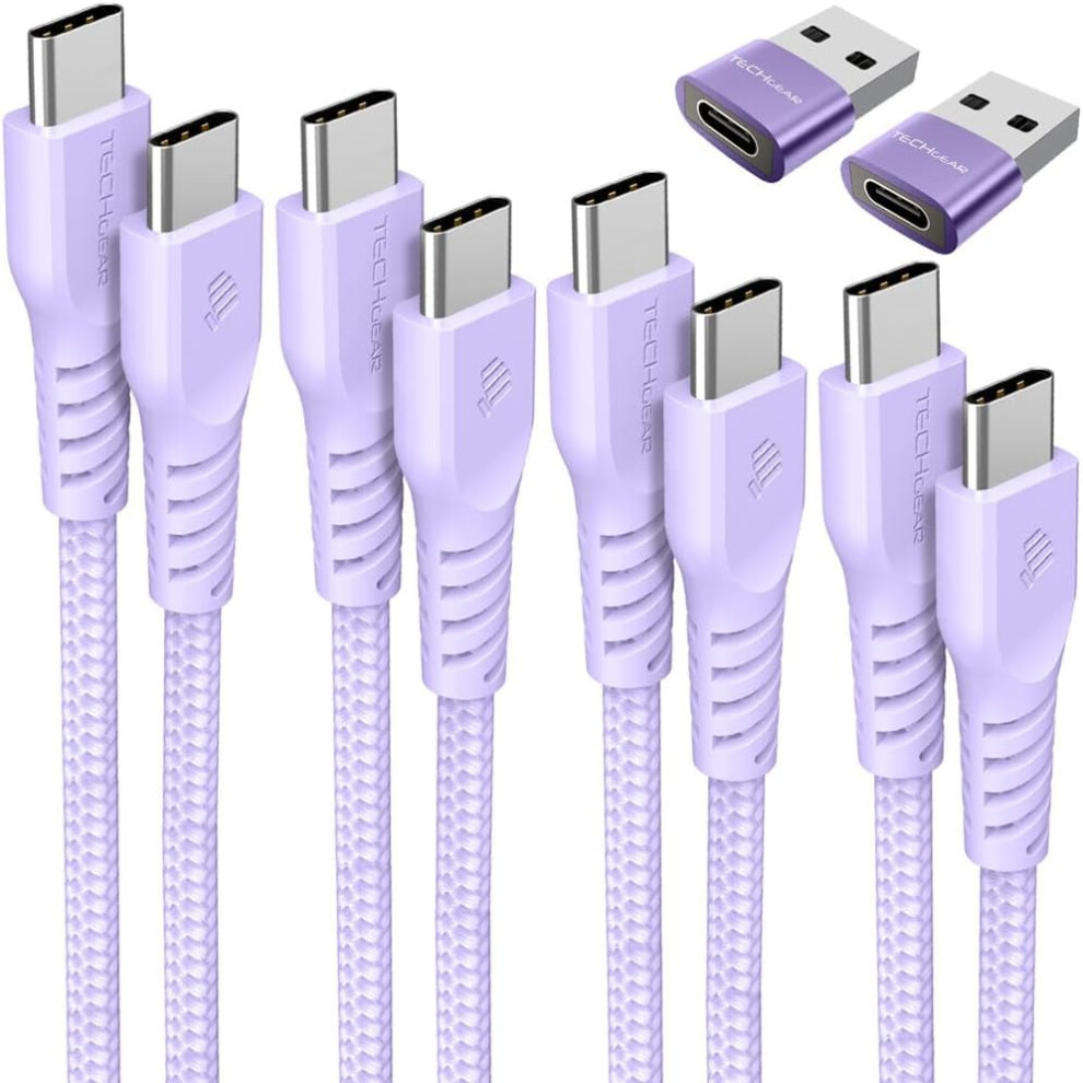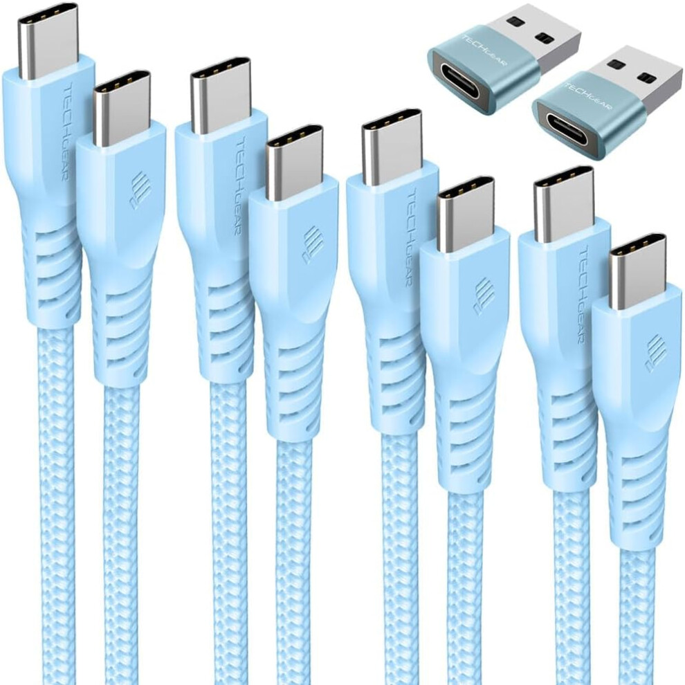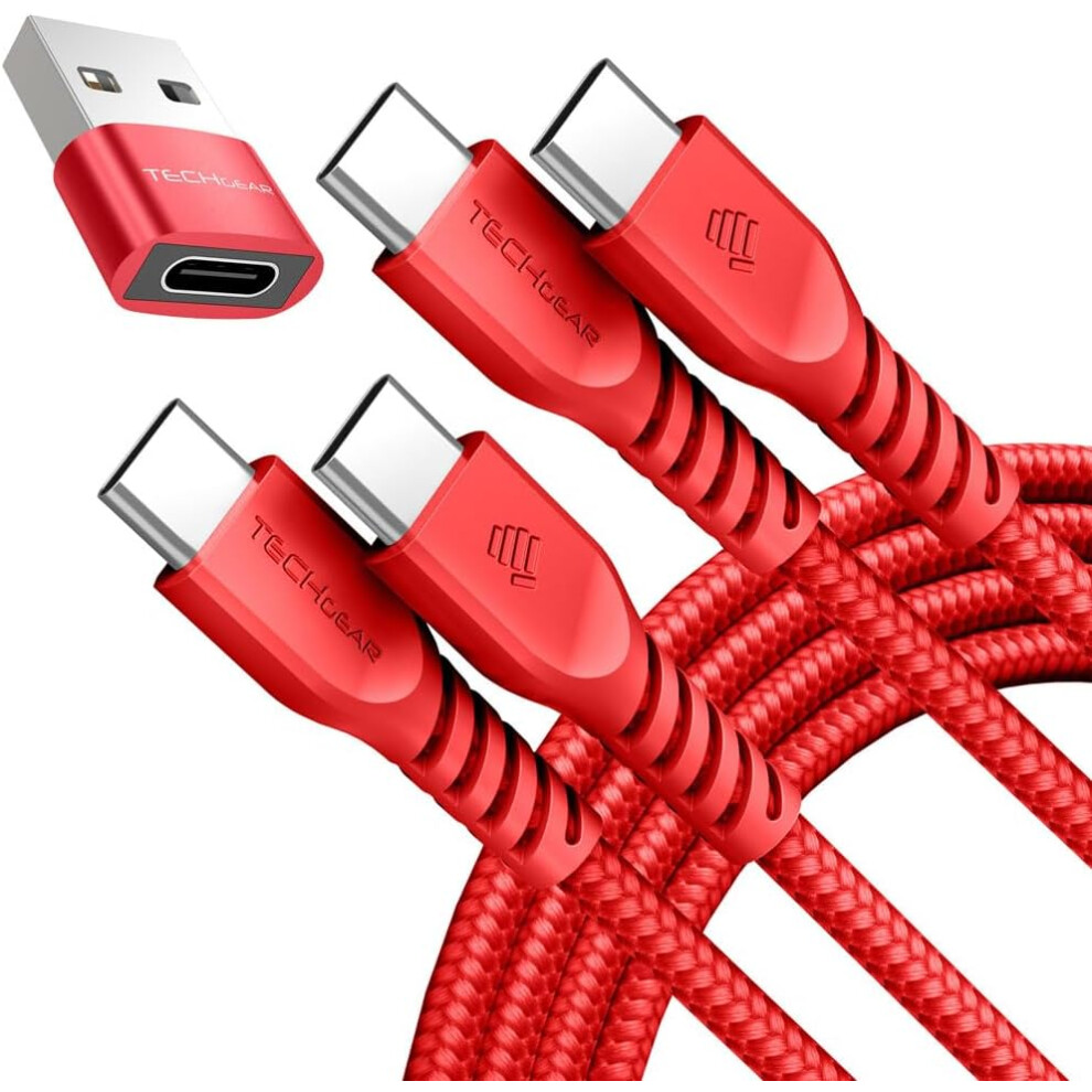 USB C to USB C Charger Cable 60W (1M+1M+Adapter) STRONG Cable Fast Charging Data Lead iPhone 15, iPad Pro 12.9 2022, MacBook Pro, Samsung S24/A15/A25