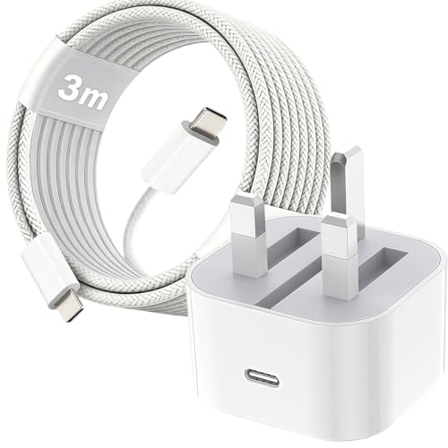3m USB C Charger for IPhone 17/16/15, Fast Charger UK Plug Adapter for IPhone 17 Air/16 Pro Max/15 Plus/16E, Charging Lead for iPad Pro 10/11th,Google Pixel 9/9a/8/7/6/5,Samsung Galaxy Z Flip 3/4/5/6