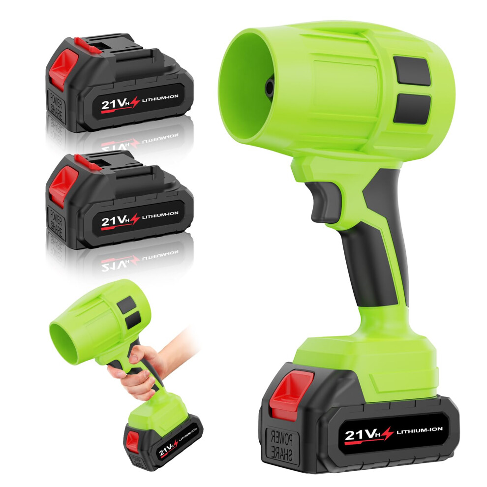 (Green)Leaf Blower Cordless with Battery, 55000RPM 850CFM Electric Leaf Blower with 2 * 21V Batteries, Portable Handheld blowers, Press to V