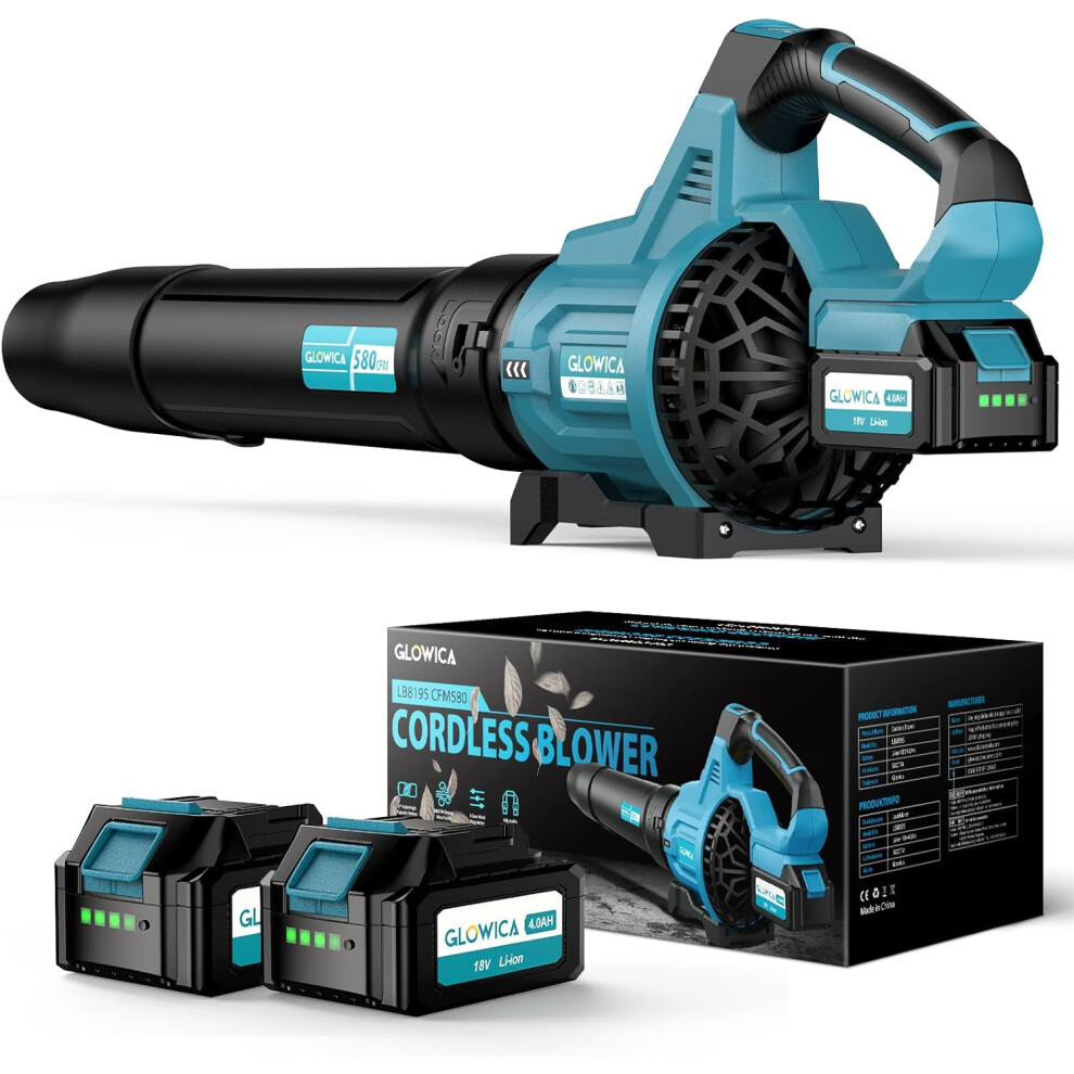 Leaf Blower, 20V Cordless Leaf Blowers with 2 Pcs Li-ion Battery, Electric Leaf Blower for Lawn Care, 218CFM Battery Powered Blowers, for Patio, Garden Cleaning, Fast Charger Included