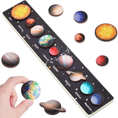 Solar System Planet Puzzle, Wooden Space Puzzle Toys for Kids, Interactive Solar System Learning Toy, Fun Space Exploration Gifts for 3-7 Year Old Boys and Girls, Birthday or Classroom Pool Toy