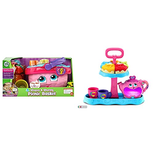 LeapFrog 603603 Shapes & Sharing Picnic Basket Baby Toy Educational and Interactive 16 Pieces, Pink, One Size & 603203 Musical Rainbow Party Learning Toy and Pretend Play Educational Tea Set