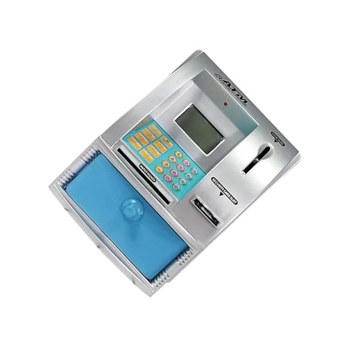 POXZSFX Piggy Bank Cash Container Mini ATM Enhancing Kids Learning Through Balance Calculator And Engaging Features Piggy Bank Cash Container Mini ATM Toy, silver blue, 13x13.5x17cm