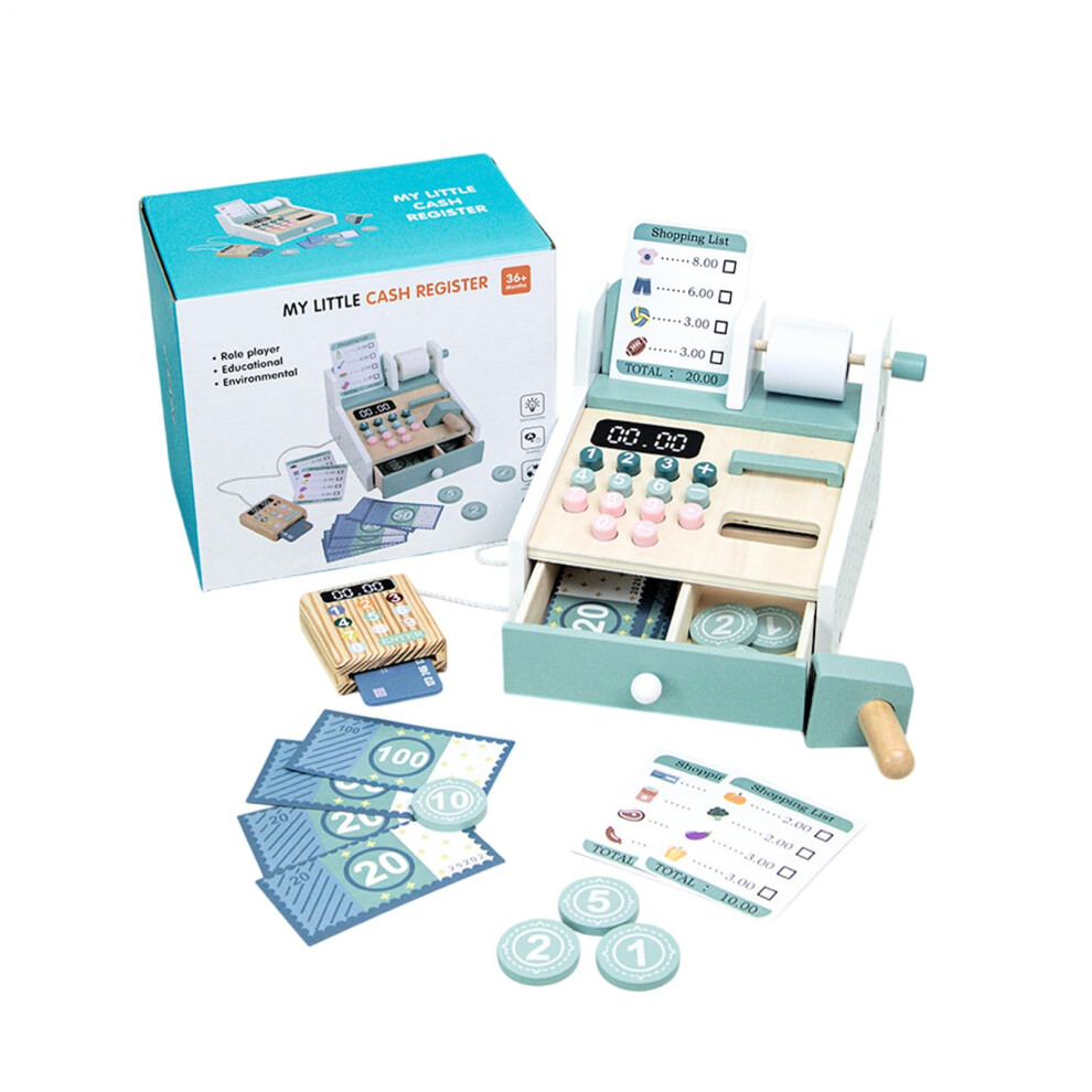 Pretend Play Cash Register Wooden Children Toy Calculator Boys Girls Role Supermarket Shopping Imagination Educational Learning Fun Interactive Set Display Classroom Preschool Activity