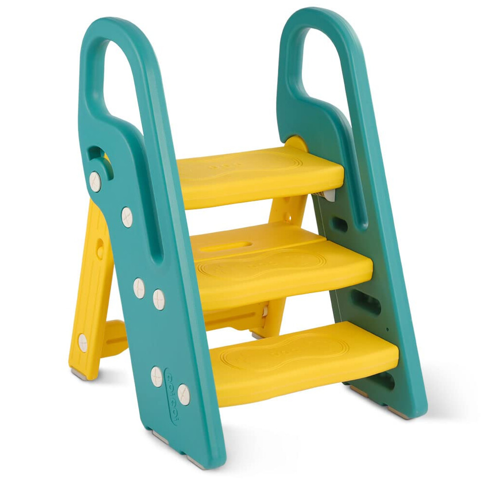Onasti Foldable Step Stool for Kids, 2 Steps - 3 Steps Height Adjustable Toddler Step Stool, Toilet Steps for Potty Training, Learning Tower with Han