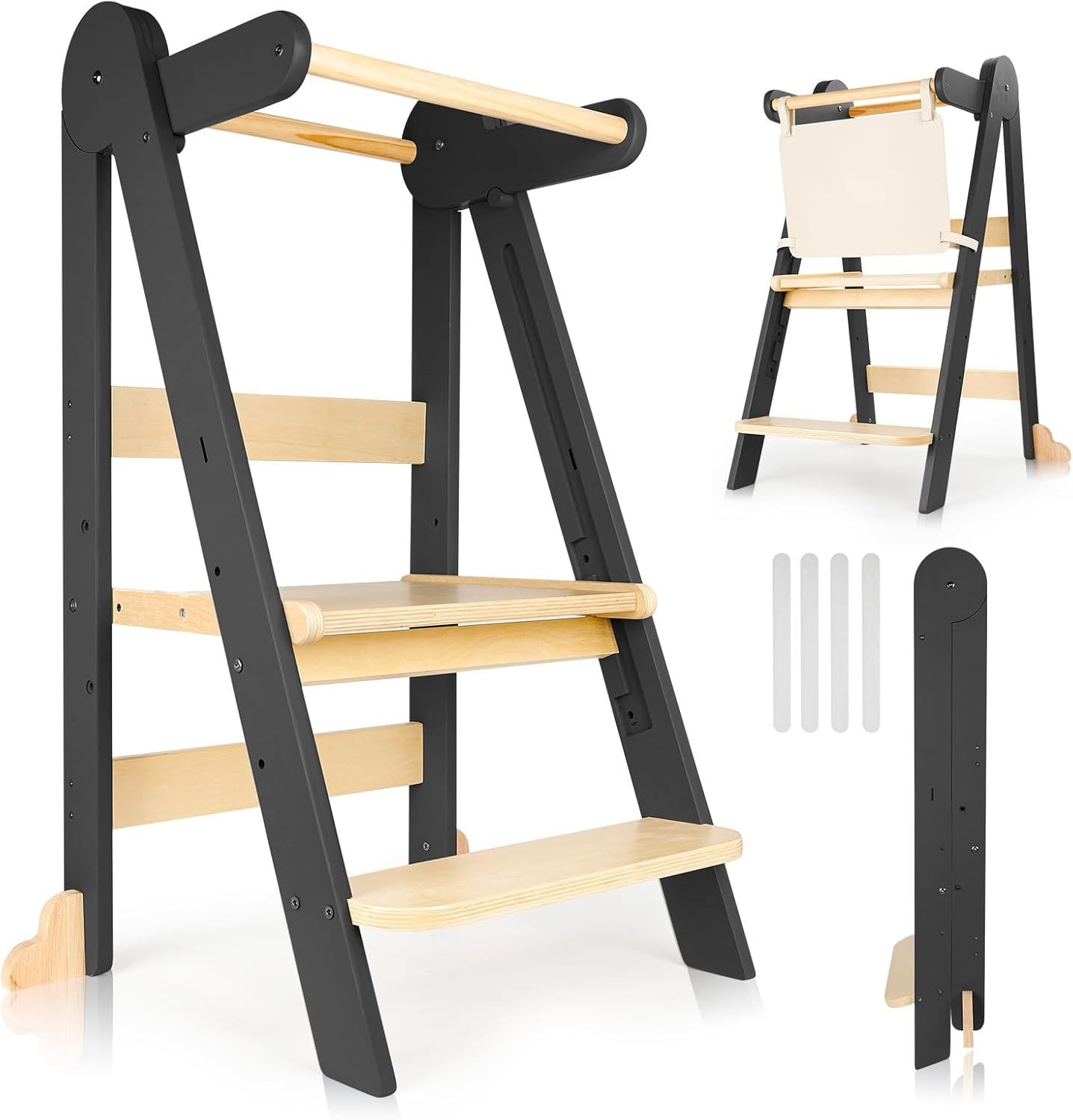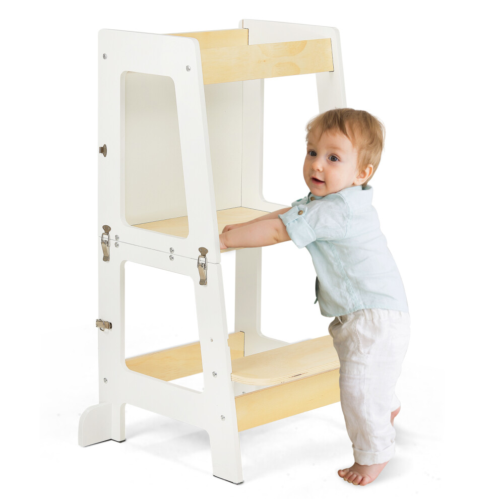 Toddler Learning Tower with Foldable Design, 3-Level Adjustable Height, Safety G