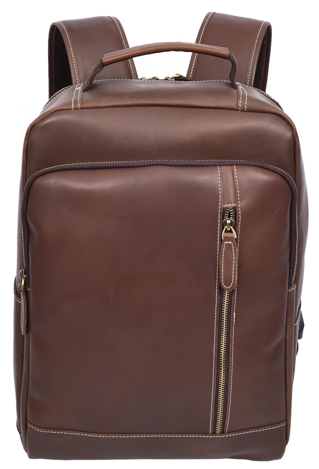 Mens Real Leather Backpack Large Size Laptop Travel Rucksack Cliff Rust Brown