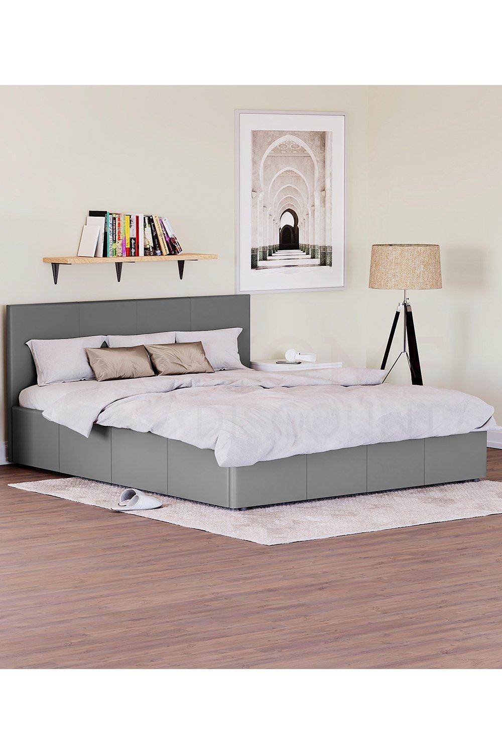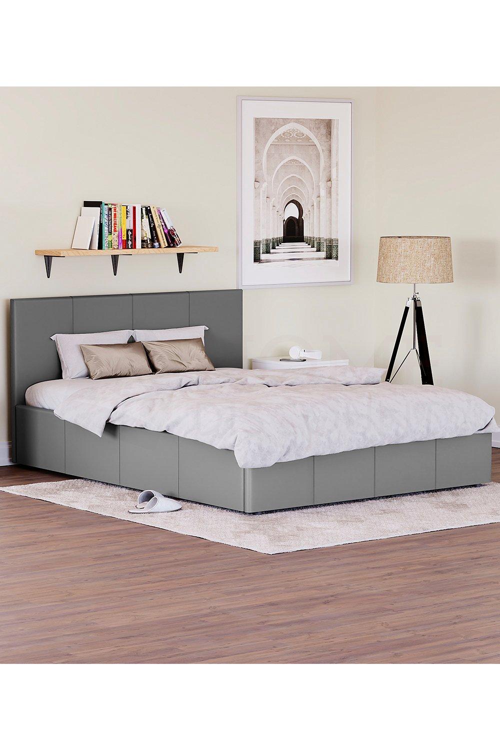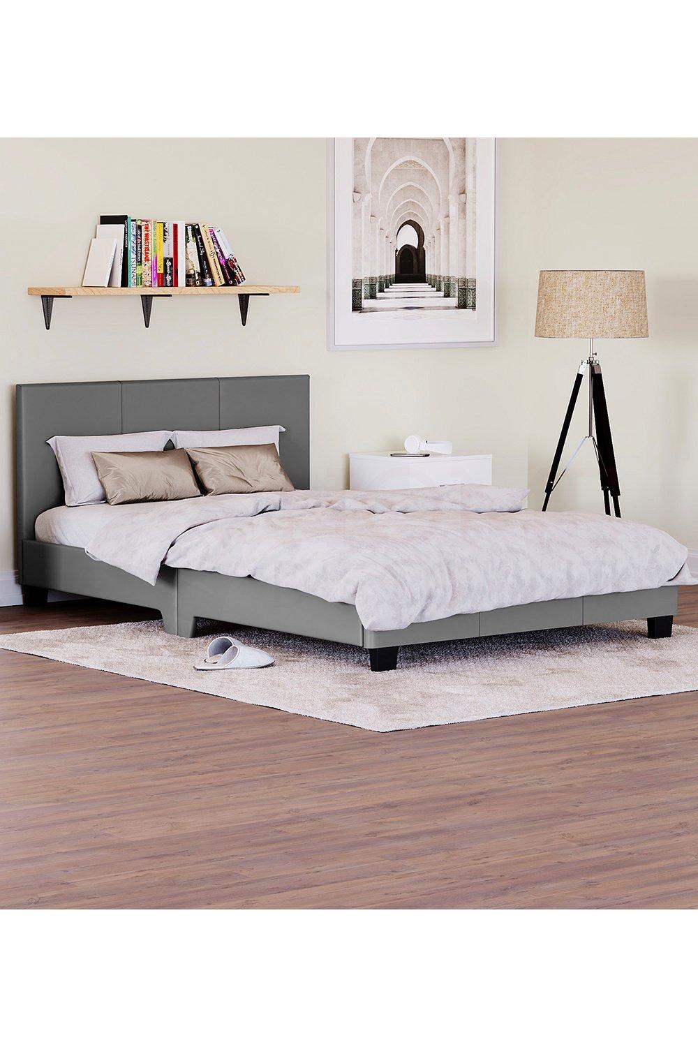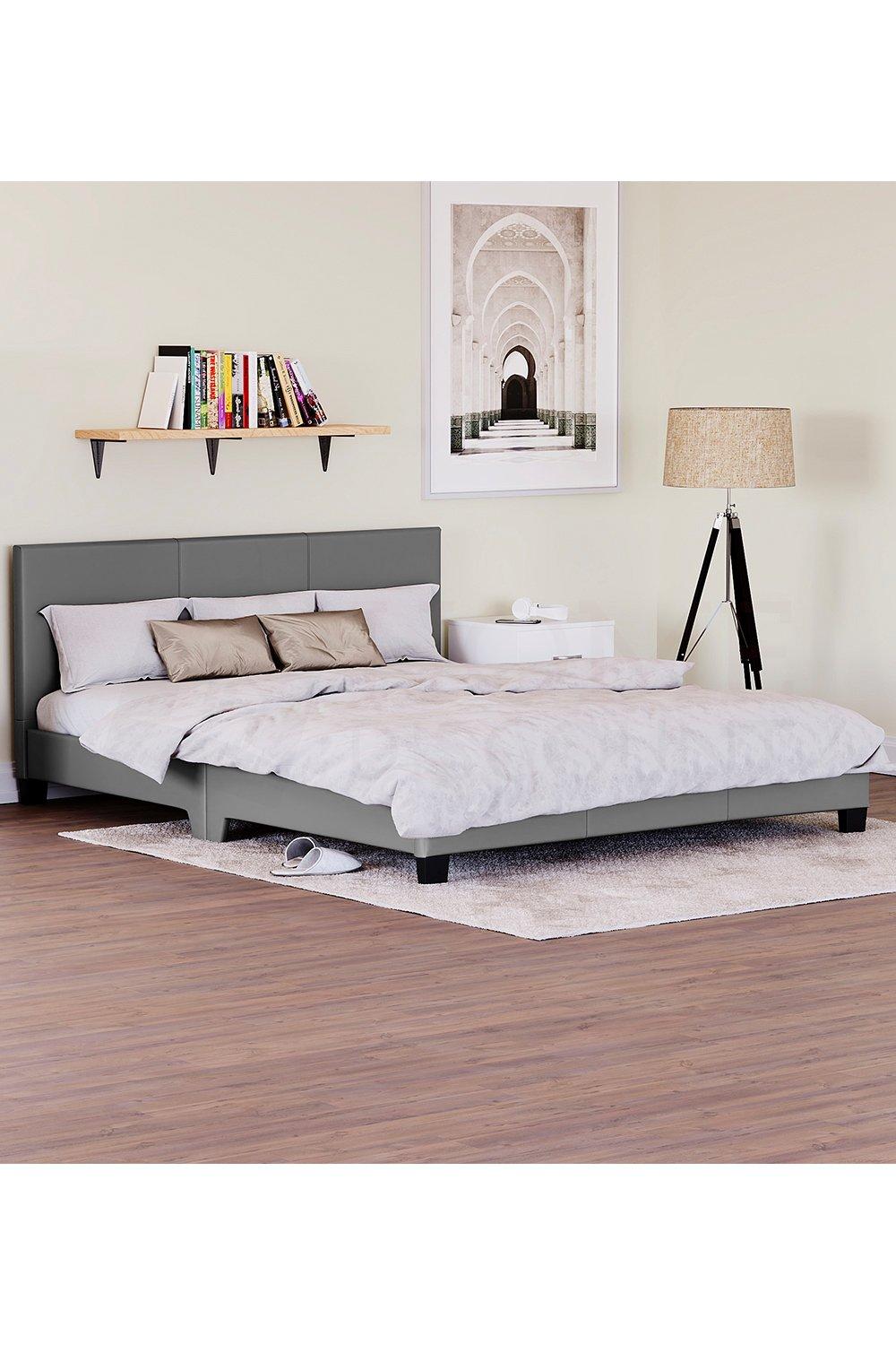 vidaXL Box Bed with Mattress Gray 120x200 cm Faux Leather