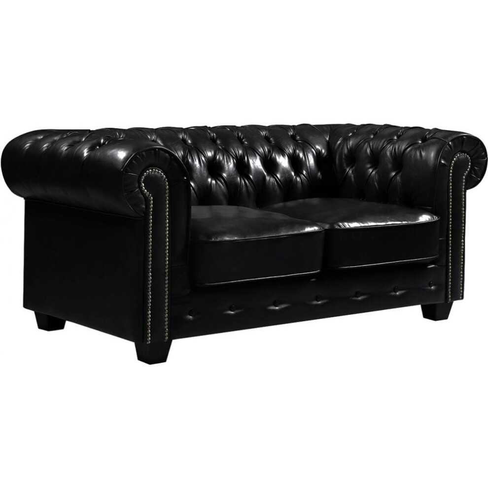 Sofas and More Chesterfield Style Venus Sofa 3 Seater 2 Seater Armchair Black Faux Leather (2 Seater)