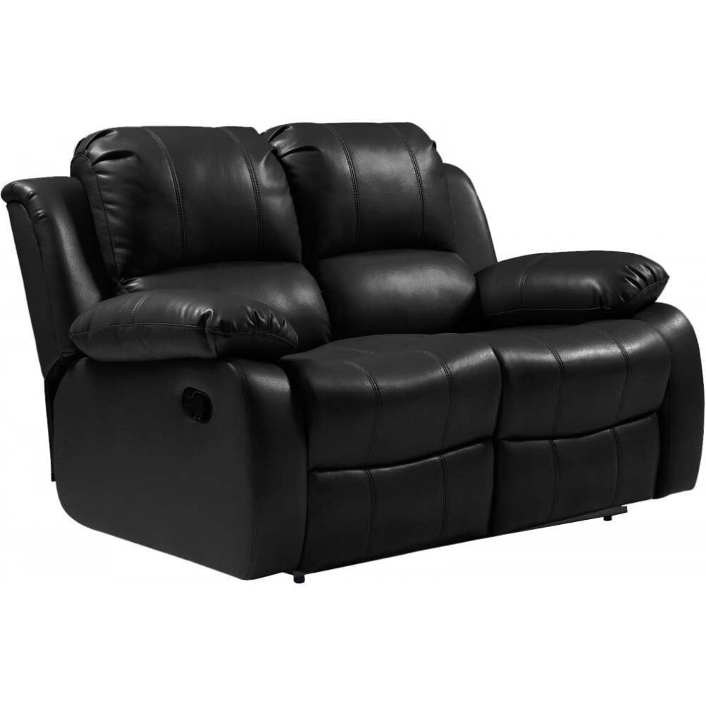 Furnishings For Less UK Venice Leather Aire Black Reclining 2 Seater Sofa High Back Padded Arms (Black, 2 Seater Sofa)