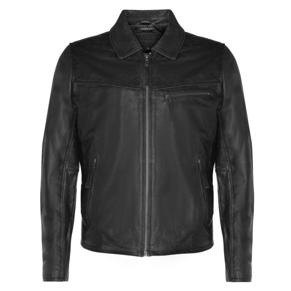 (3XL) Mens Smart Black Cow Hide Leather Bomber Jacket