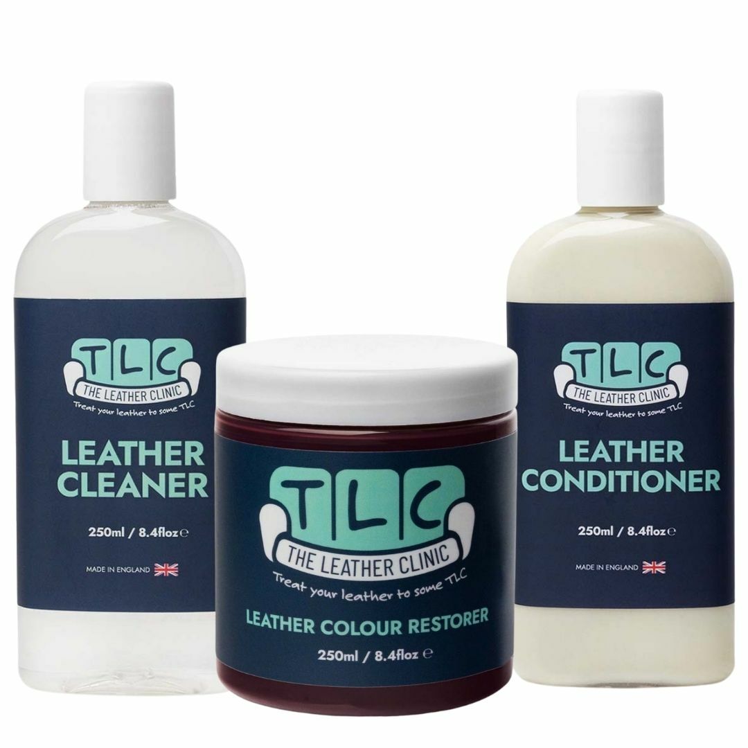 The Leather Clinic Leather Cleaner & Conditioner Kit 250ml | Complete Rejuvenation Kit for Furniture, Sofas, Car Seats & More | Cloth Applicators Included