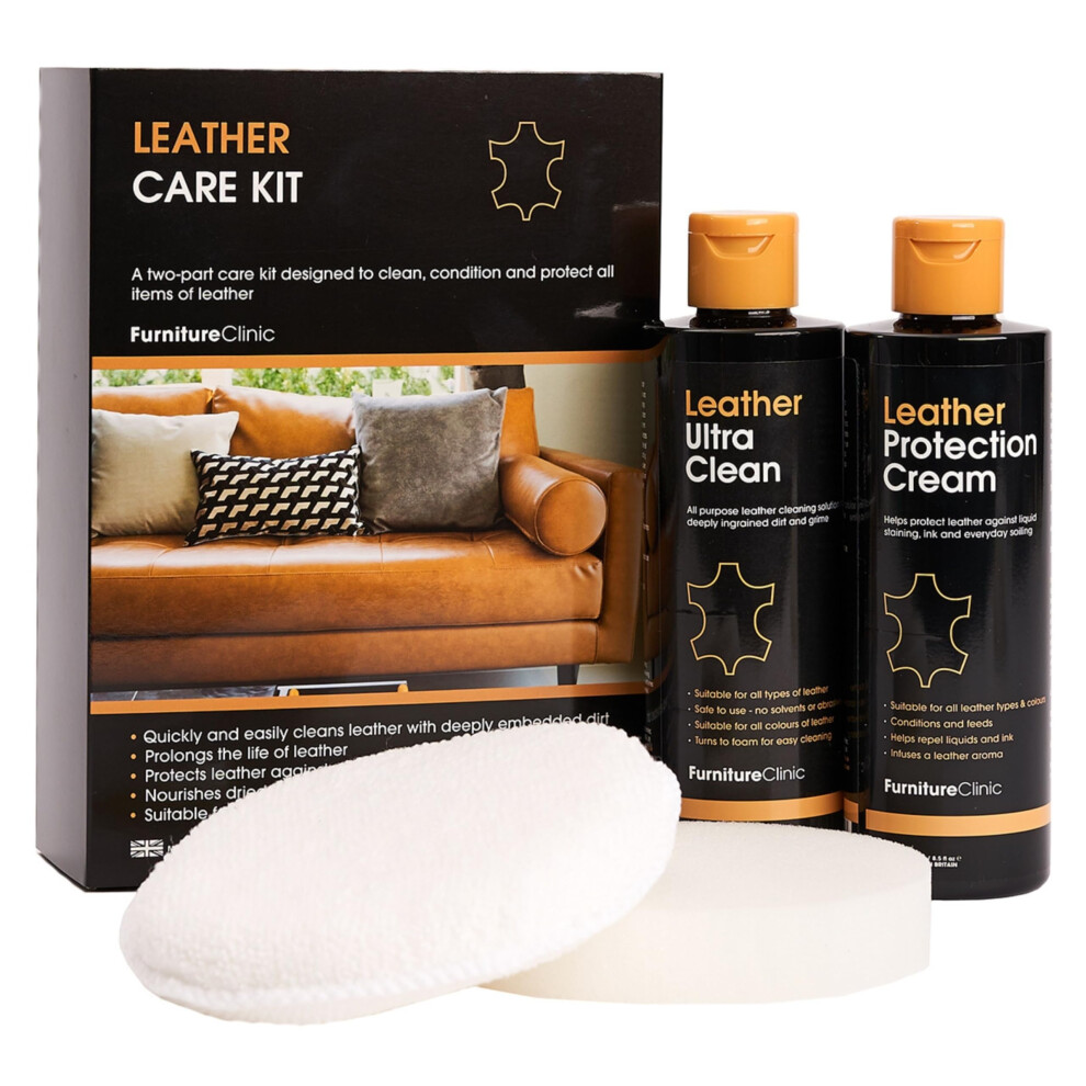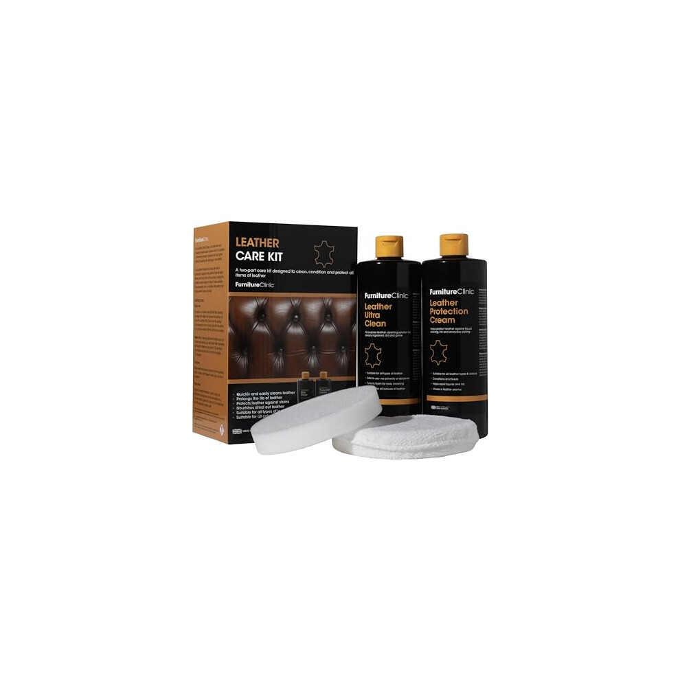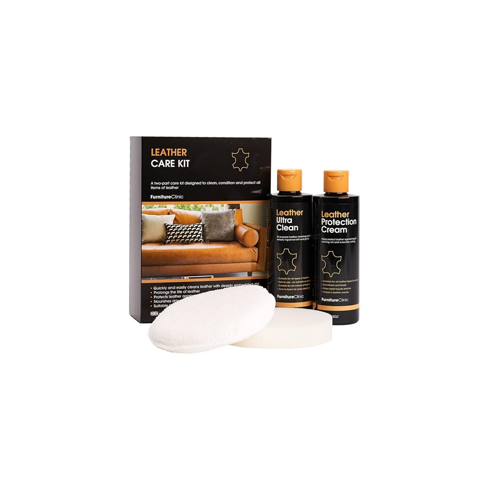 Furniture Clinic Complete Leather Care Kit | Leather Cleaner & Leather Protection Cream for Sofas, Car Seats | Leather Care Set Includes 500ml Ultra