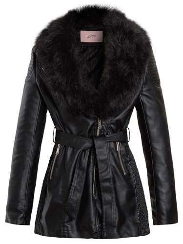 SS7 Womens Faux leather Biker Coat with Faux Fur Collar