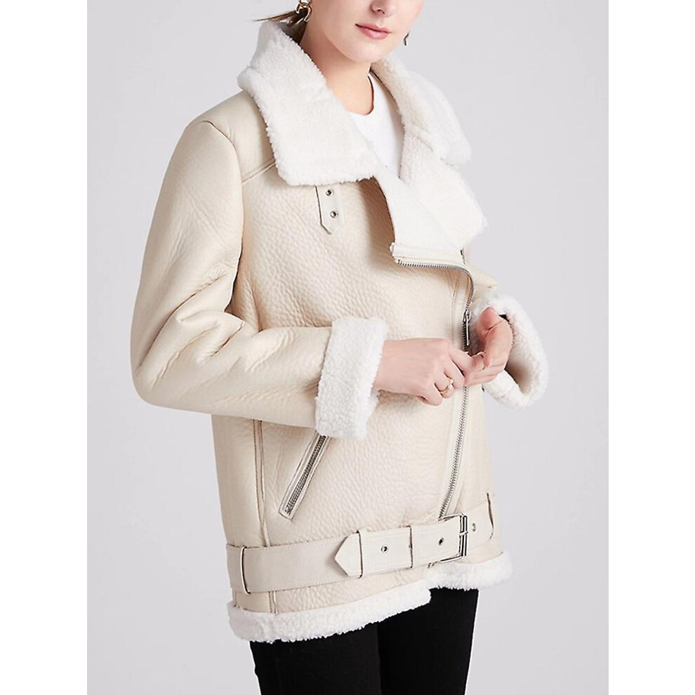 (Beige, XL) Winter Coats Women Thick Faux Leather Fur Sheepskin Coat Female Fur Leather Jacket Aviator Jacket