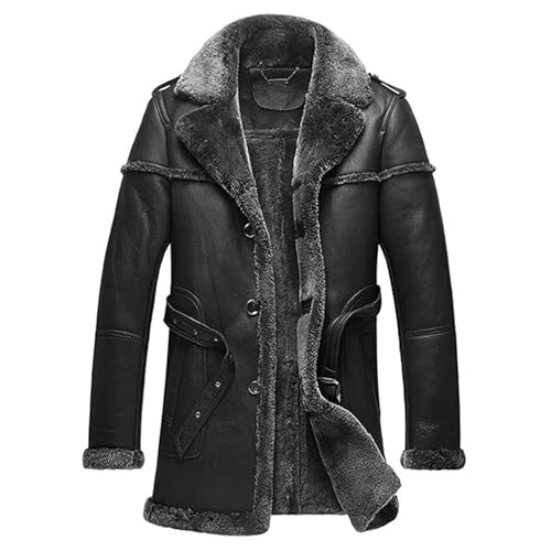 New Aviator Raf Leather Jacket WW2 Bomber B3 Flying Pilot Airforce Genuine Leather Jacket Men Real Sheepskin Fur Coat (UK, Alpha, XL, Regular, Regular, Black with Grey Fur)