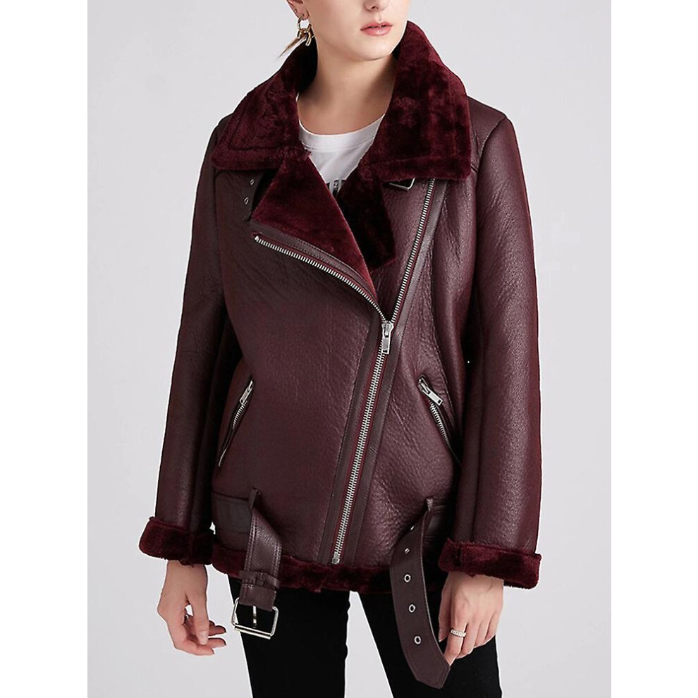(Wine, XL) Winter Coats Women Thick Faux Leather Fur Sheepskin Coat Female Fur Leather Jacket Aviator Jacket