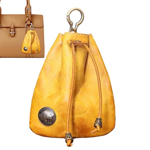 gnuine Leather Cowhide Bag - Small Coin Purse Retro Storage Bag | Handmade Drawstring Key Pouch, Leather Car Key Case Holder, Mini Wallet Organizer for Cons Cards Keys, Classic Handcrafted B