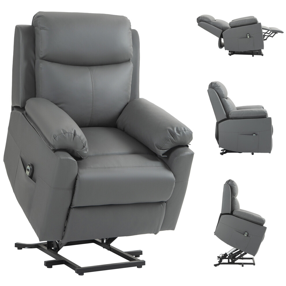 More4Homes OAKFORD ELECTRIC RISE RECLINER BONDED LEATHER ARMCHAIR LOUNGE SOFA MOBILITY CHAIR (Slate)