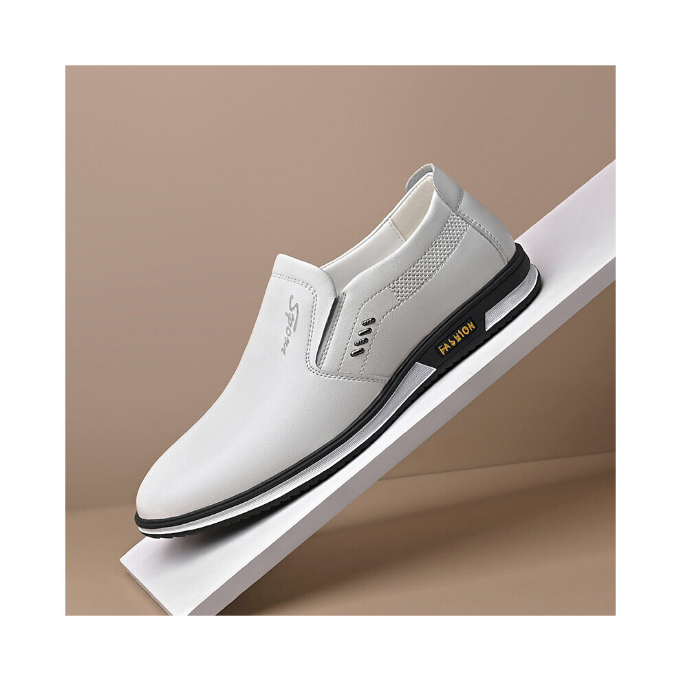 (white Black-43) Men's Leather Casual Shoes Male Loafers Shoes Breathable Non-slip Footwear Vulcanized Shoes Running Sneakers