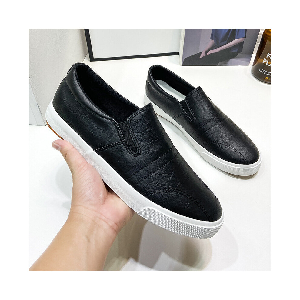 (Black-6.5) Mens Shoes Men Casual PU Leather Shoes Male Breathable Slip-On Leisure Shoes Business Flat Shoes