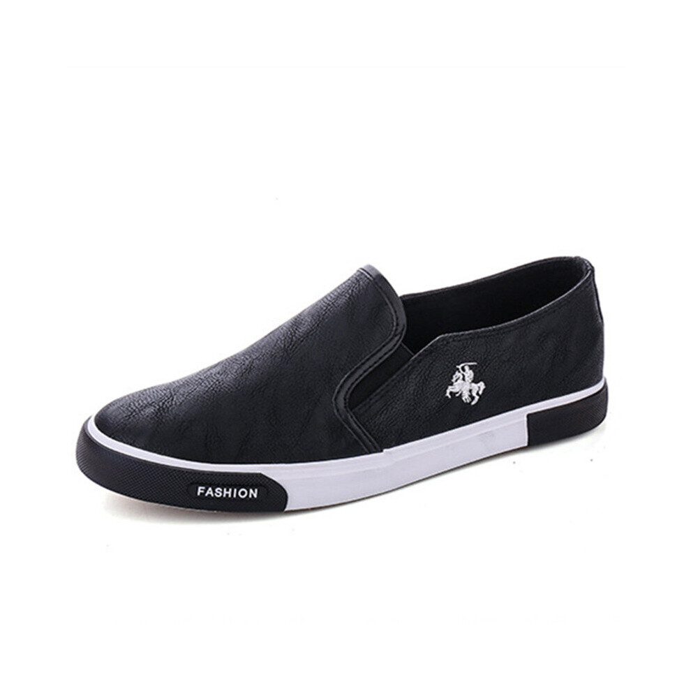 (Black-8.5) Mens Shoes Men Casual PU Leather Shoes Male Breathable Slip-On Leisure Shoes Business Flat Shoes