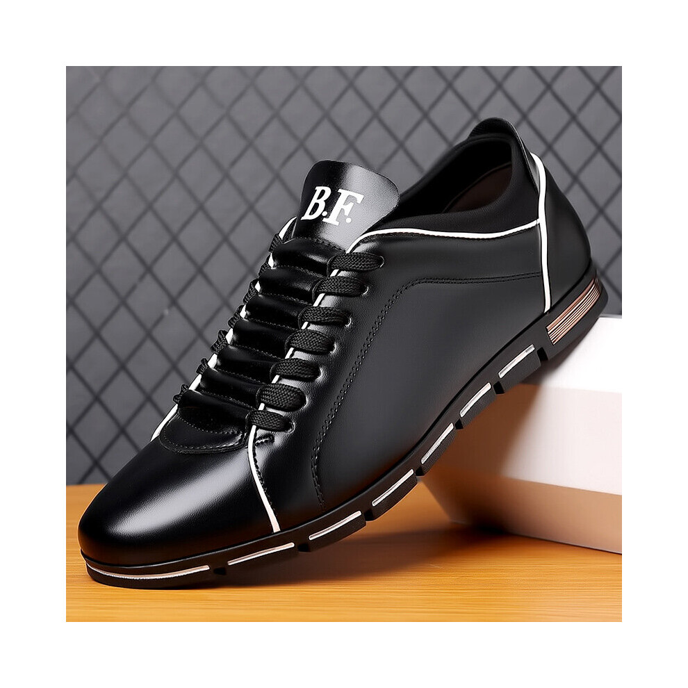 (Black-8) Mens Shoes Men Casual PU Leather Shoes Male Breathable Slip-On Leisure Shoes Business Flat Shoes