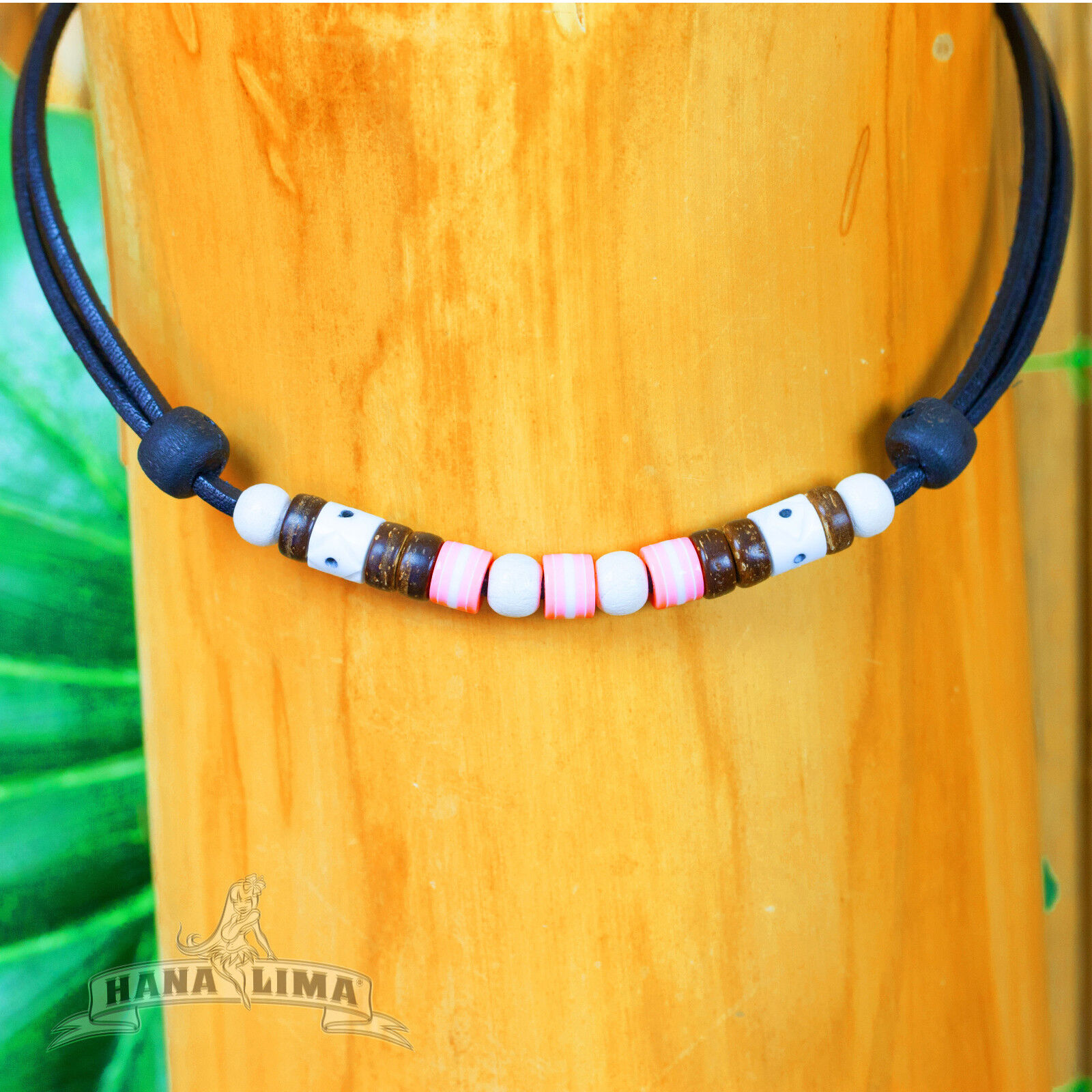 Surfer Chain Leather Necklace Women's Necklace Surf Jewelry Leather Jewelry Pink