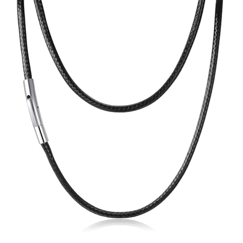 Fogcosy Leather Necklace Cord with Clasp - Mens Womens Black Leather Cord Necklaces Rope Chain with Stainless Steel Clasp 3mm 20 inch, Braided String Necklaces for Men Women