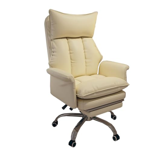 GIZNXBA Big And Tall Office Chair Ergonomic Computer Chair Gaming Leather Sofa Recliner Executive Chairs Height Adjustment Study Chairs With Arms For Bedroom, Living Room(/Beige,With foot rest)