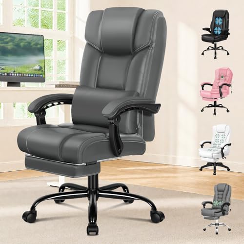 naspaluro High Back PU Leather Ergonomic Computer Recliner, Big Tall Executive Desk Office Chair with Armrests/Footrest, Comfy Heavy Duty Swivel Study Chairs, Adjustable Home Office Gray Work Chair