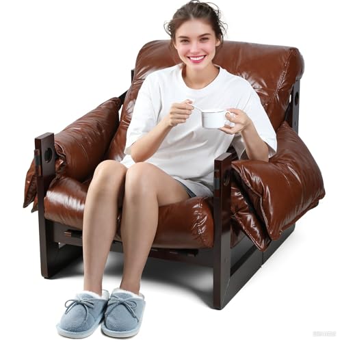 ZJYIGOWL Leisure Chair With Adjustment Back For Bedroom Upholstered Leather Recliner Sleeper Chairs Ergonomic Office Desk Chairs With Armrests Heavy-Duty Armchair With Soft Cushion(A)