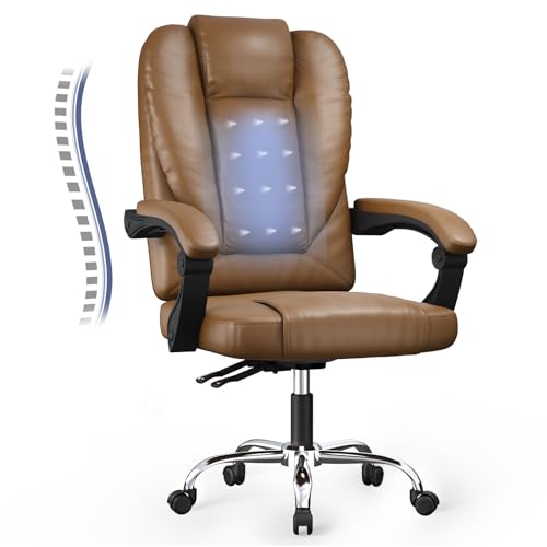 rattantree Executive Office Desk Chair, Computer Leather PU Recliner, Ergonomic Office Chair with Tilt Function, Heavy Duty for Home Office, High Back Brown Swivel Chairs