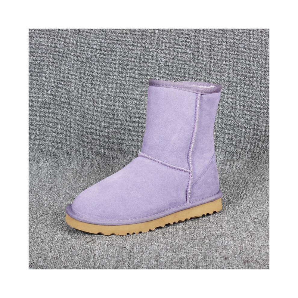 (Purple, 7 (Adults')) Women Winter Fur Leather Sheepskin Snow Boots Shoe